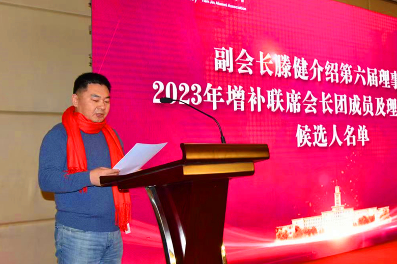 南开大学天津校友会副会长、2022年第二季度轮值会长滕健介绍第六届理事会2023年增补联席会长、理事候选人名单。
