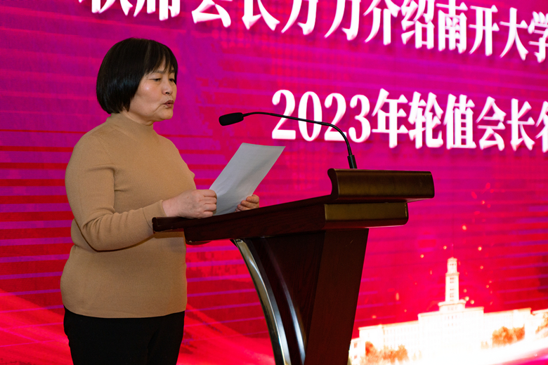南开大学天津校友会联席会长、2022年第三季度轮值会长万力宣布2023年轮值会长名单。