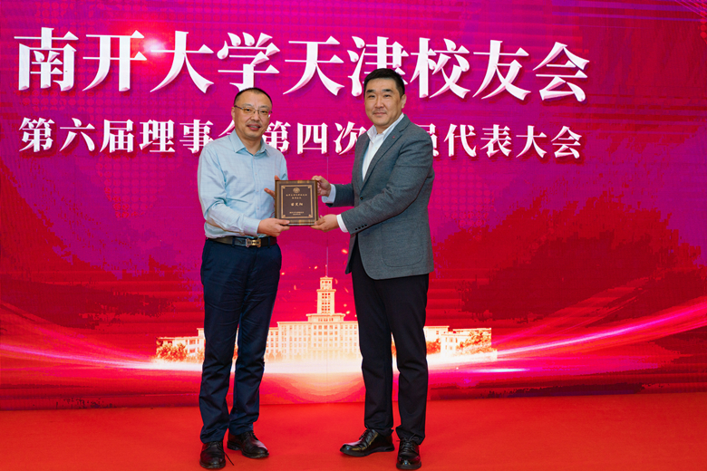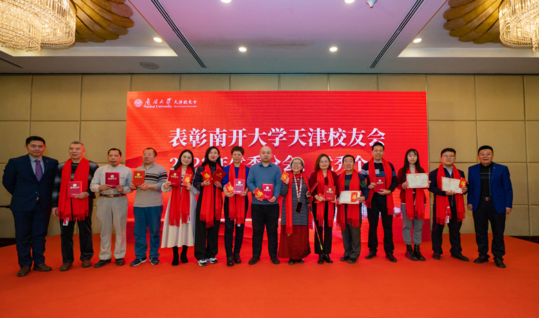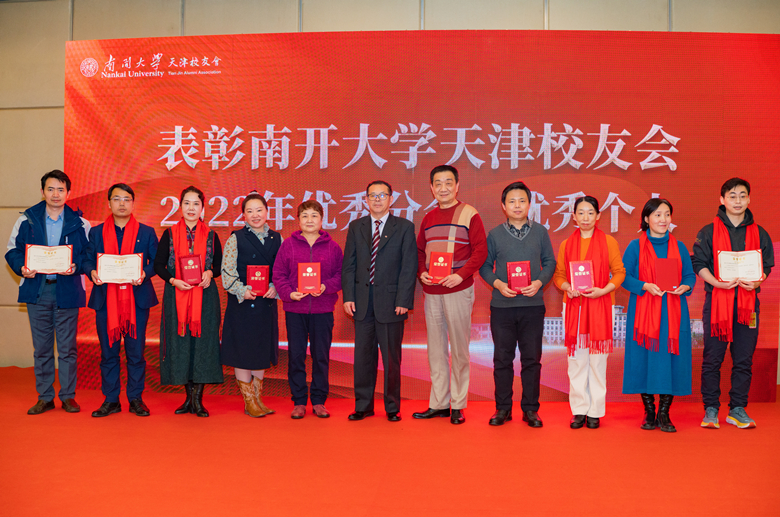 南开大学天津校友会联席会长、2022年第四季度轮值会长张弥,2023年第一季度轮值会长曲万成共同为2022年度天津校友会优秀个人代表颁发荣誉证书。