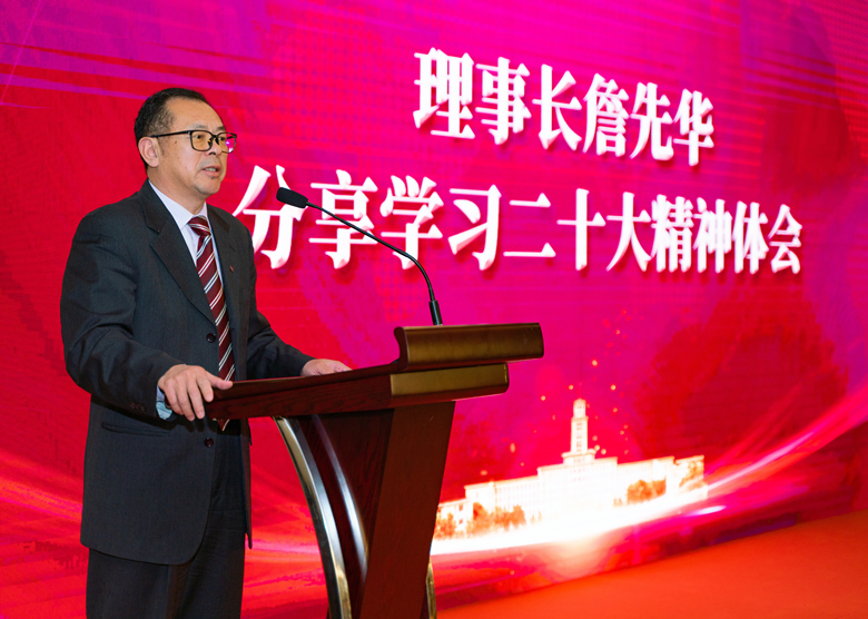 南开大学天津校友会理事长詹先华分享“学习二十大的精神体会”。他指出,“党的二十大”报告中传递出了对经济工作及“科技强国”的高度重视,这为我们推动“校友工作”的进步注入不竭动力。下一步,天津校友会将继续发力,在全面总结“如何更好扶持、拥抱校友企业”的经验基础上,根据市场需求和变化,大胆创新,不断探索符合校友更高生活需求服务新策略,全心全意打造大“南开人”朋友圈。